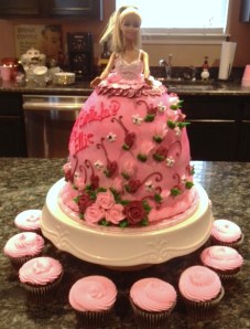 until I released Princess Barbie from her cake-and-buttercream prison. And then several of the party guests, including myself, started to giggle after a brief, stunned moment of silence. Because this was no Princess Barbie after all…this was Princess HOOCHIE MAMA Barbie: